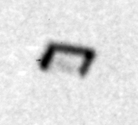 It emitted no sound as it moved slowly, at about the speed of a helicopter, and diagonally to the direction of the wind. Its shape when viewed from below was that of a square. The center was white or silver in color and it had a black stripe around its perimeter. From the side it appeared to have a dome on the top and bottom. There vaguely appeared to be a row of lights along its upper edge.