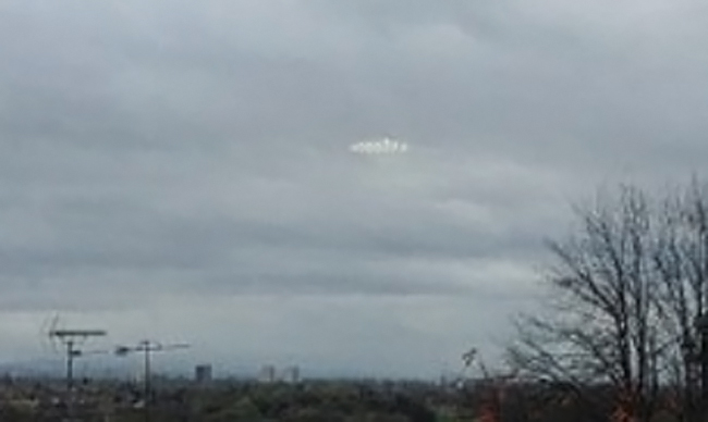 John Hindley was at his friend’s house in Middleton, Manchester on Friday, November 7. He awoke at approximately 10:00 a.m. after reportedly feeling a “lunar pull” drawing him to the window. Standing at this third floor window, Hindley felt compelled to take a photograph. So he pulled out his cellphone and snapped two photos. The photos show an illuminated saucer-shaped object seemingly hovering over the city.
