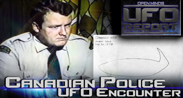 “So I jumped up and ran out as fast as I could,” the witness stated. “And I look straight up and there it was – a gigantic, black rectangle with red lights in the shape of a pyramid and one light off to itself on the edge of the craft.”